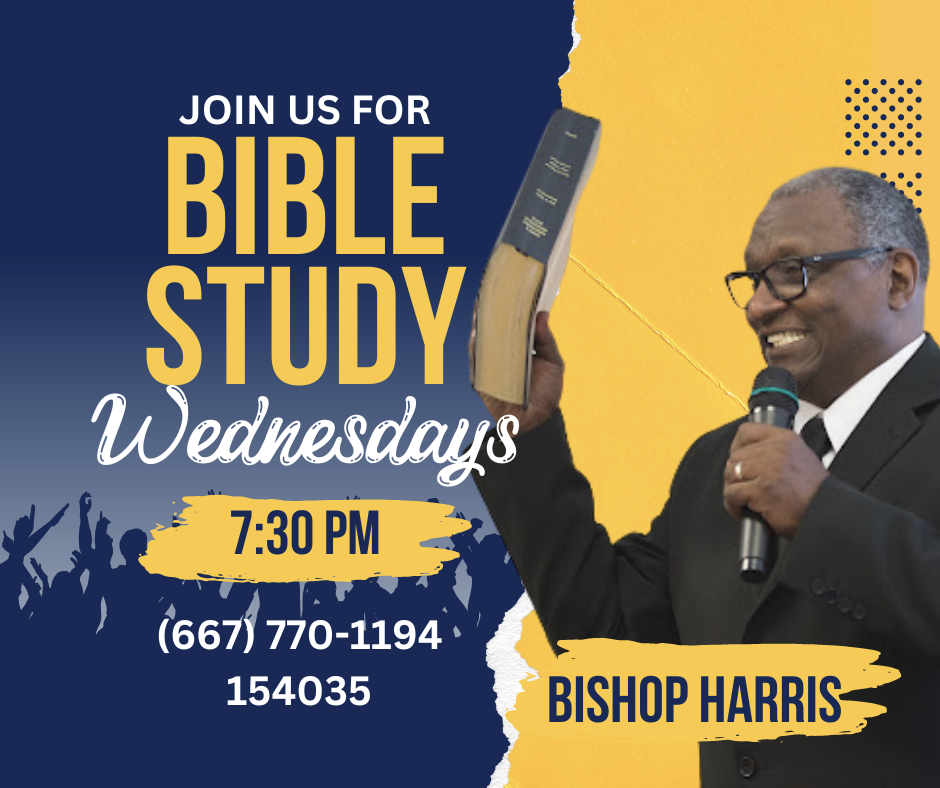 Want to gain more Bible knowledge? Join us online on Wednesdays at 7:30 p.m. Our bishop, elders, and ministers are biblical scholars who utilize their experiences, expertise, and wisdom to train in righteousness. This is your opportunity to gain an in-depth knowledge of the Word of God, provide valuable input, and get answers to your questions. Dial (667) 770-1994 to enter our Bible study and enter access code 154035.