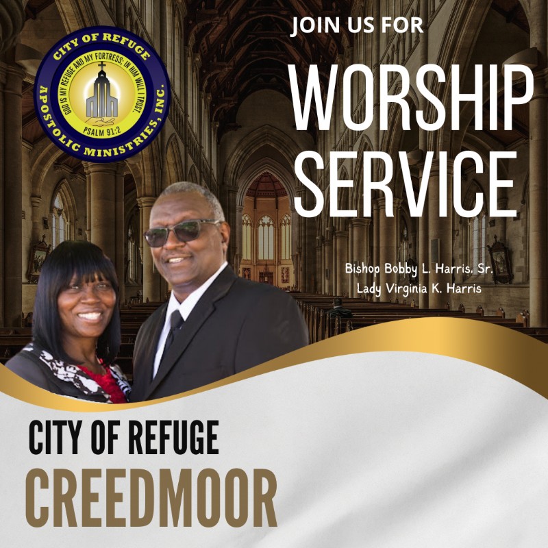 Services are held at City of Refuge - Creedmoor on 4th Sundays. Christian education, Sunday School, begins at 10:30 a.m. Morning worship follows at 11:30 a.m.